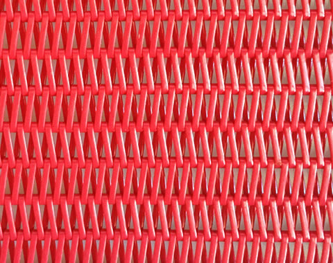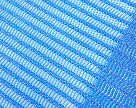 乙字型聚酯網(wǎng)帶采用優(yōu)質(zhì)高粘度聚酯切片加工線材,經(jīng)過成型、編織、整理、定型而成